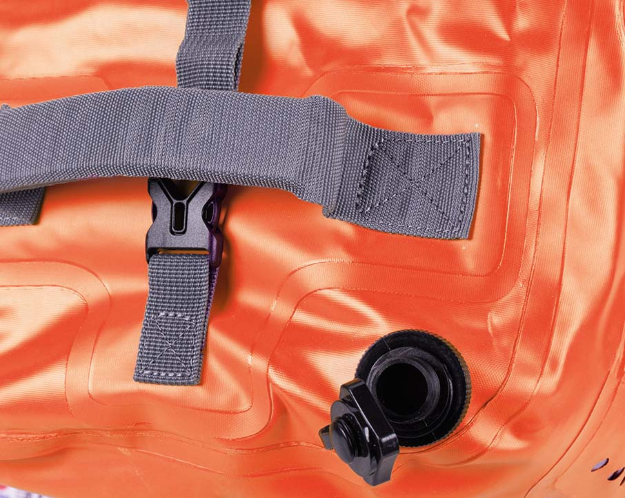 Roll-top sistem omogoča popolno vodotesnost, tudi v ekstremnih razmerah. Ventil za nadtlak omogoča enostavno izpustitev odvečnega zraka, da torba ostane kompaktna.
