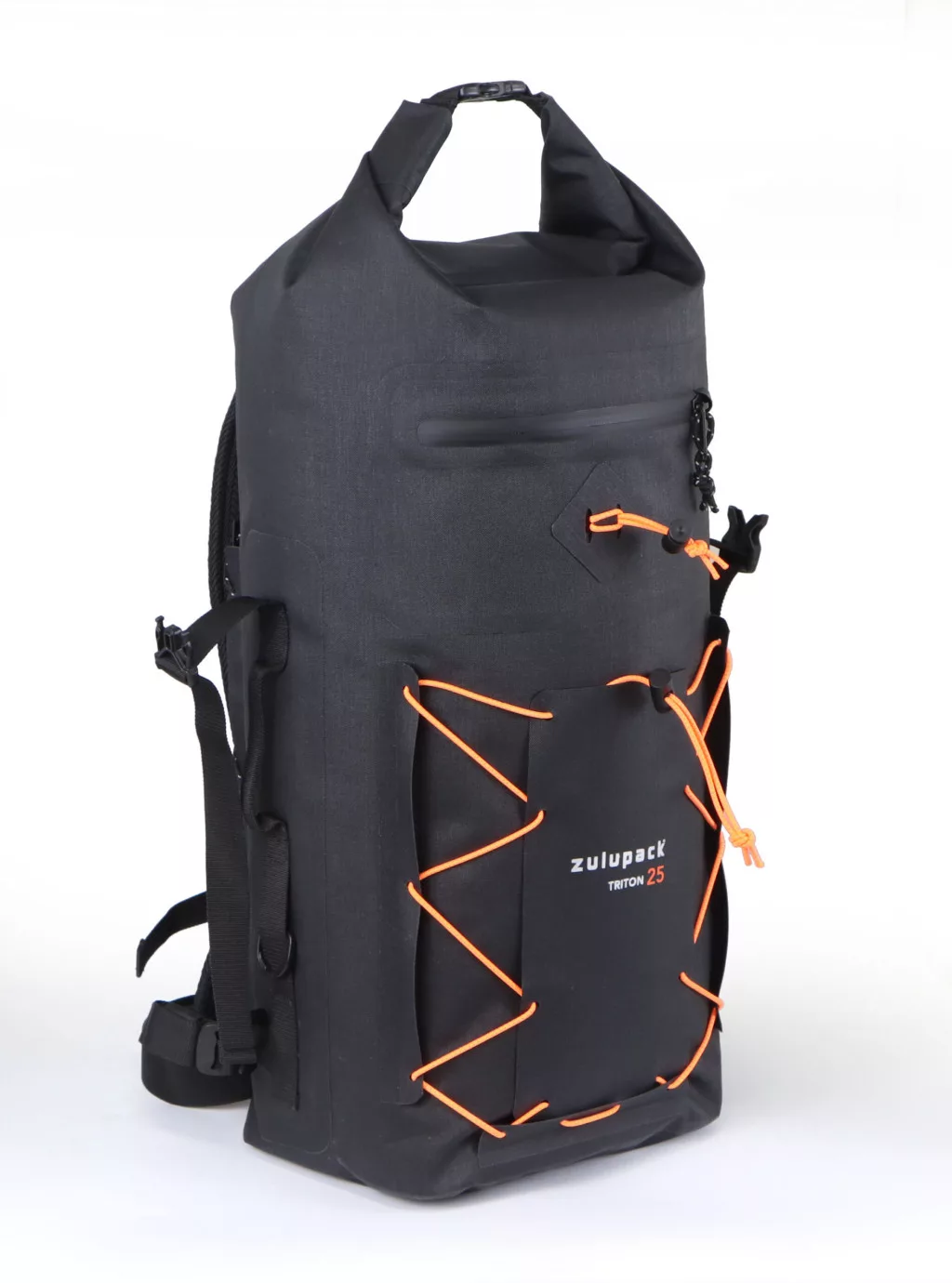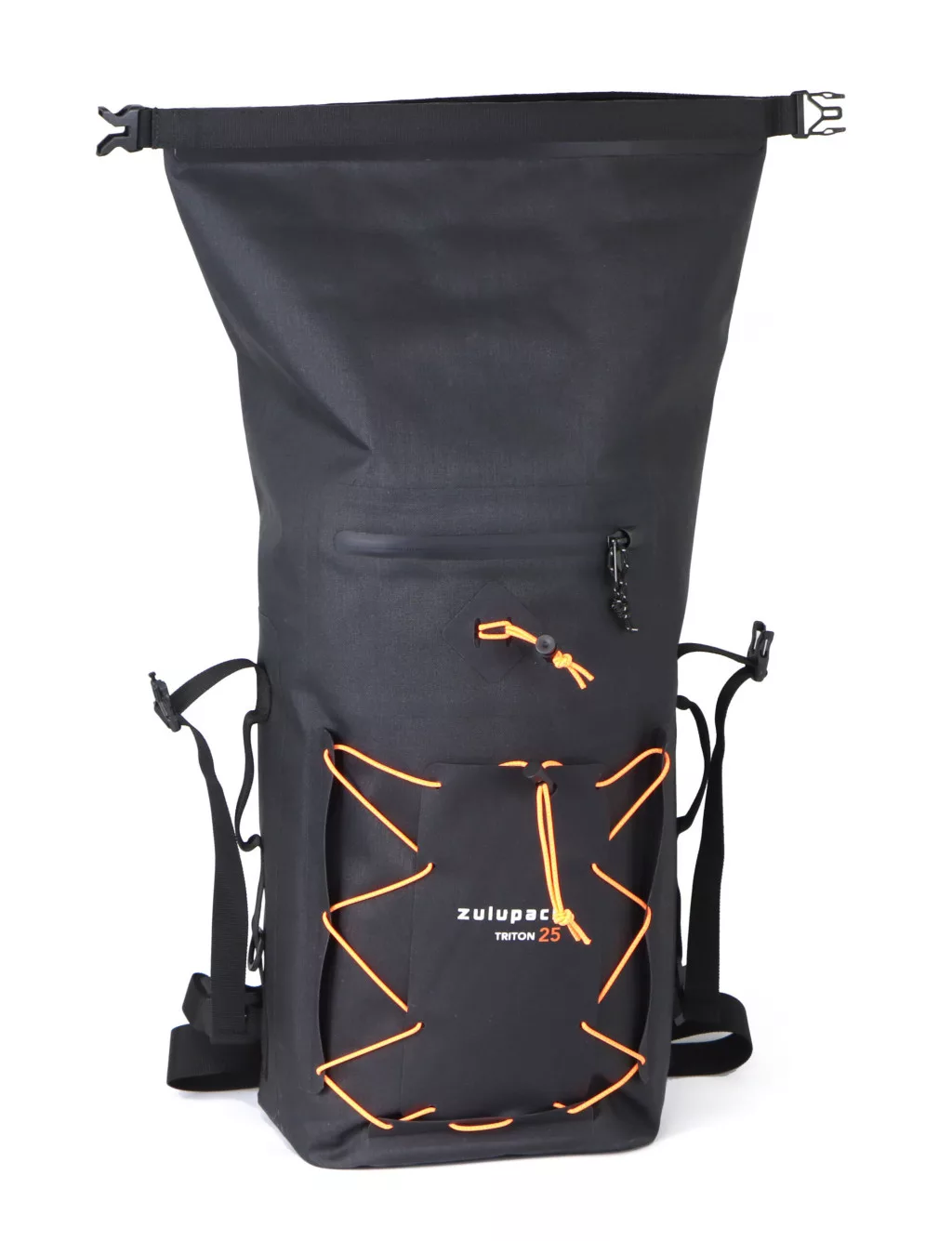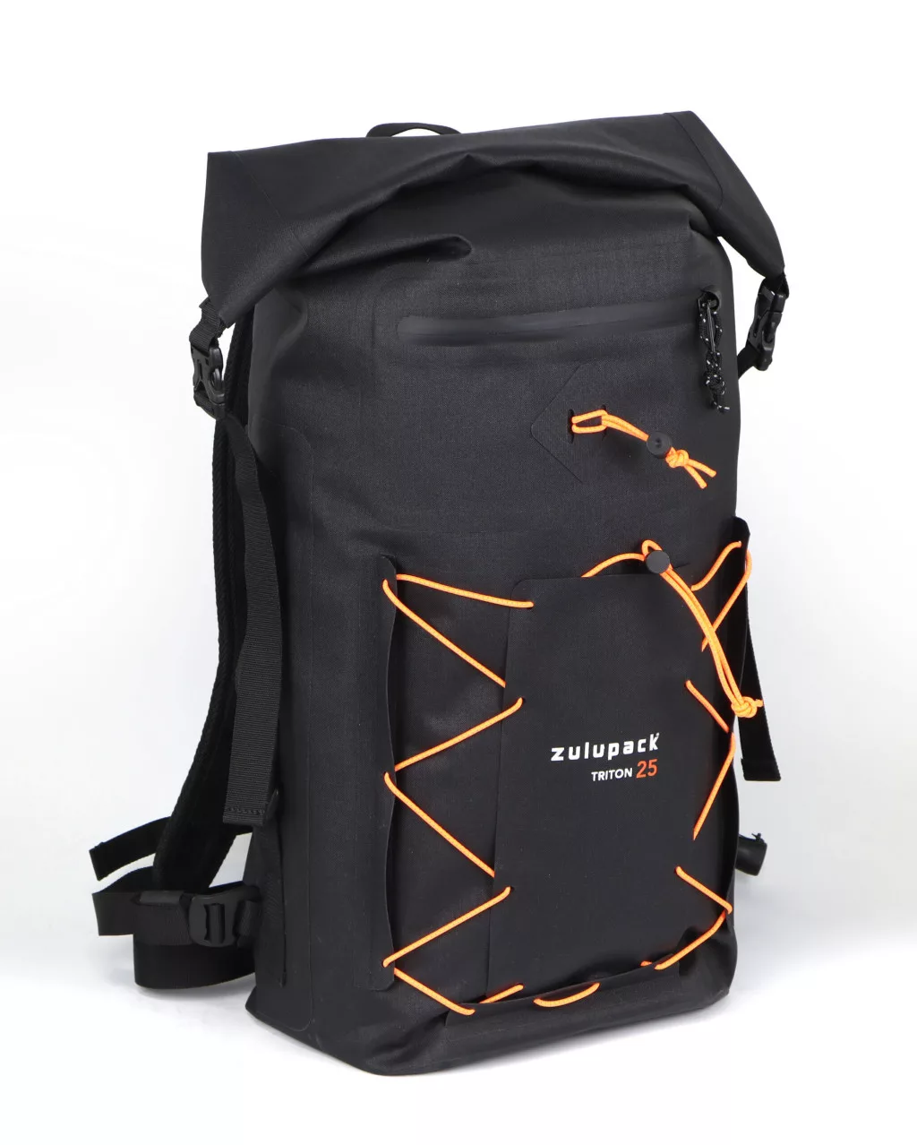 Zulupack® Triton 25L Cordura® je vodotesni roll-top nahrbtnik, zasnovan za razmere, kjer običajni nahrbtniki hitro odpovejo: močan dež, škropljenje, vlažno okolje ali vodni športi. Zaradi certifikata IP67 je nahrbtnik vodotesen tudi ob potopu do globine 1 meter za največ 30 minut. Za zanesljivo tesnjenje skrbita roll-top zapiranje in visokofrekvenčno varjeni šivi.