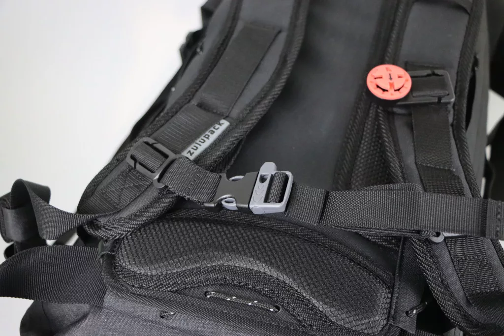 Prsni trak z integrirano piščalko poveča varnost, prozorno dno pa omogoča hiter pregled in lažje iskanje manjših predmetov brez brskanja po celotnem nahrbtniku.